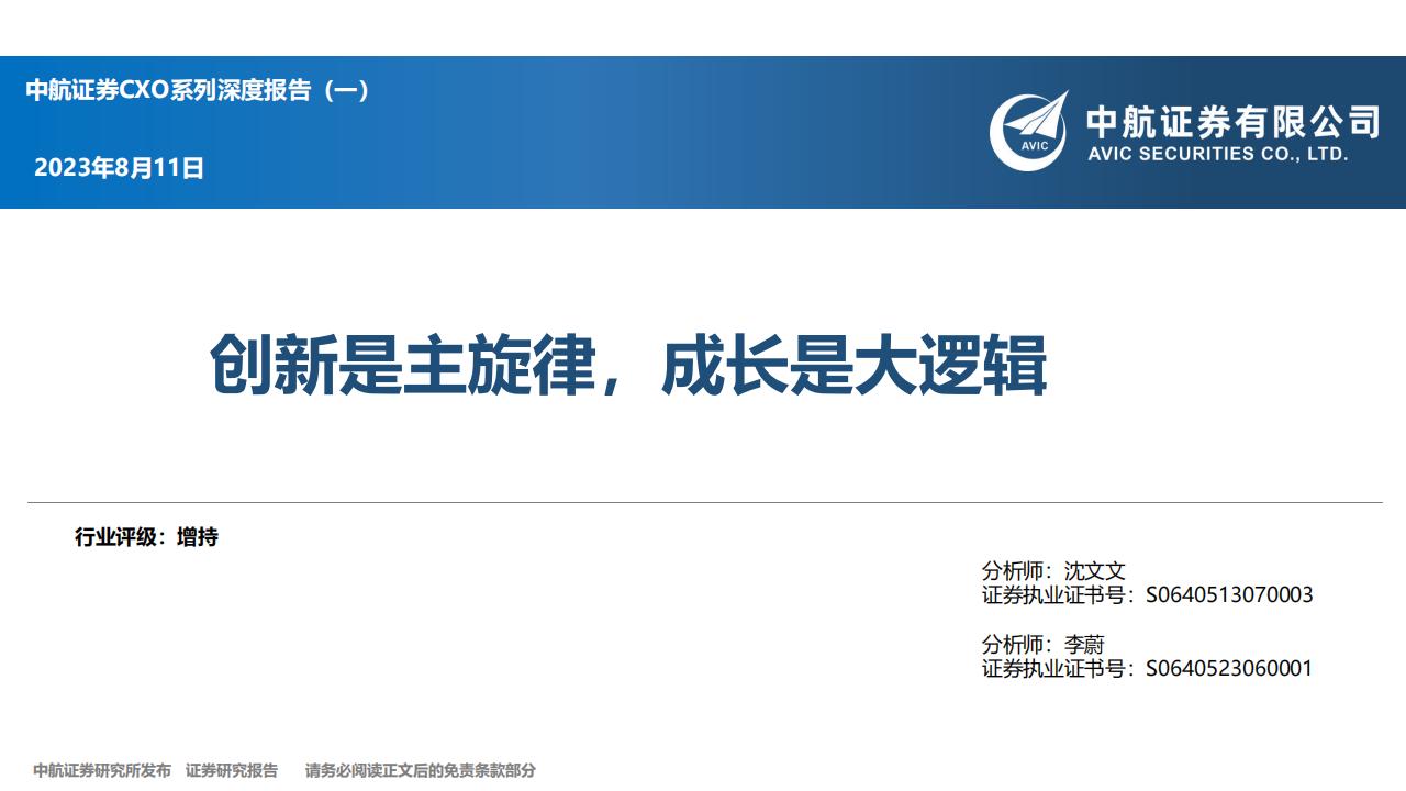 中航证券:CXO行业系列深度报告(一):创新是主旋律,成长是大逻辑.pdf