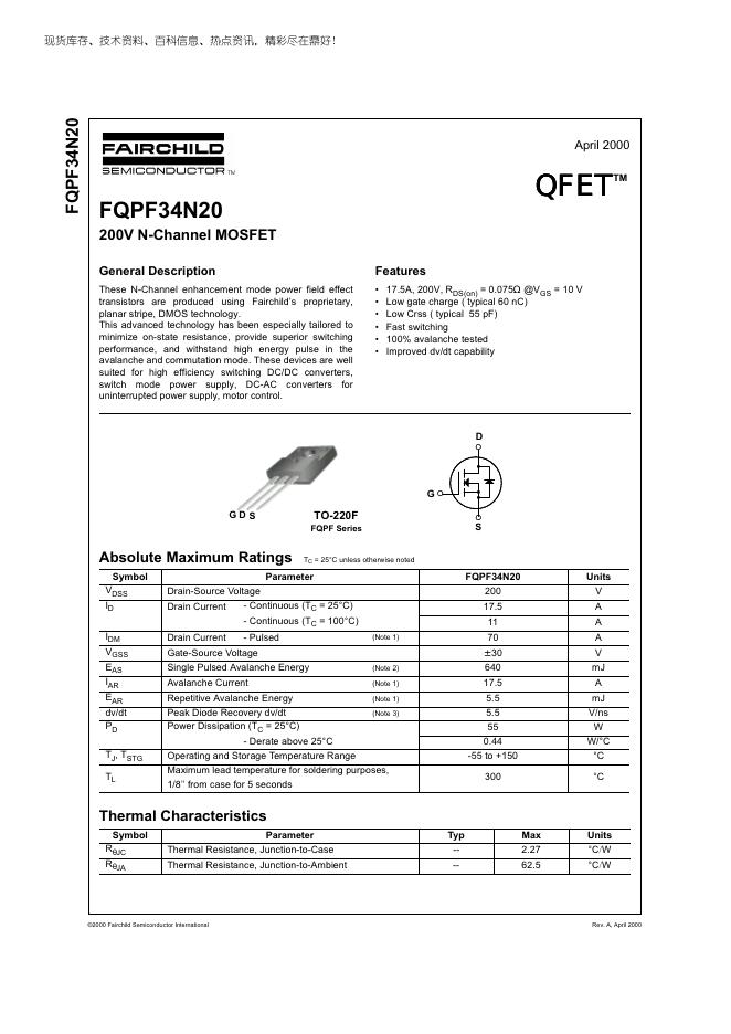 FAIRCHILD FQPF34N20 数据手册.pdf