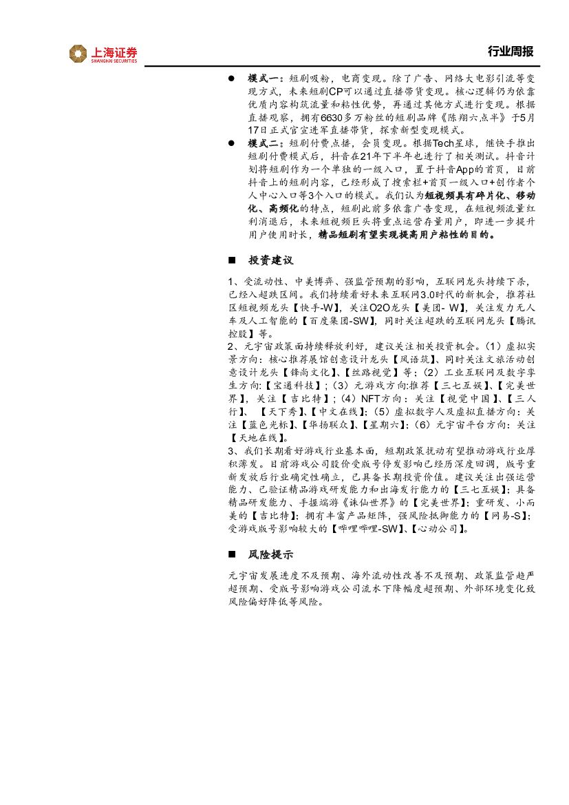 上海证券:互联网传媒行业周报:快手短剧日活超2.6亿,关注短视频会员付费的可能(更正).pdf