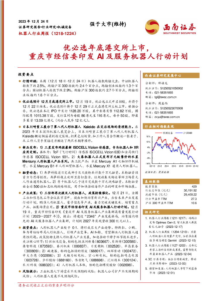 西南证券:机器人行业周报:优必选年底港交所上市,重庆市经信委印发AI及服务机器人行动计划.pdf