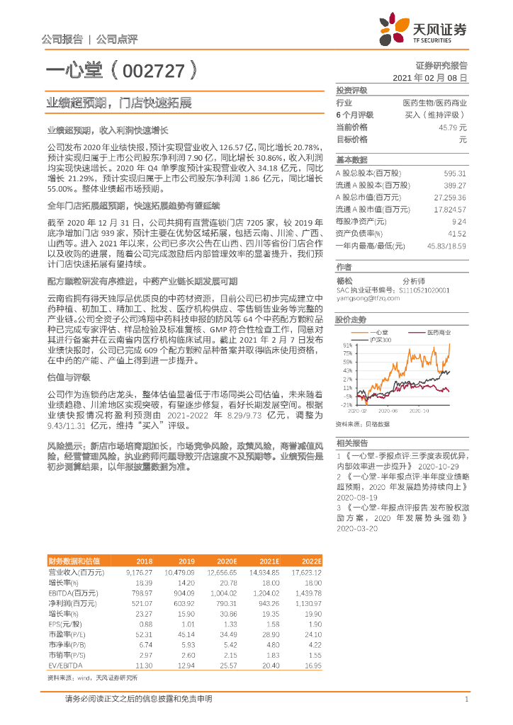 天风证券:一心堂(002727)-业绩超预期,门店快速拓展.pdf