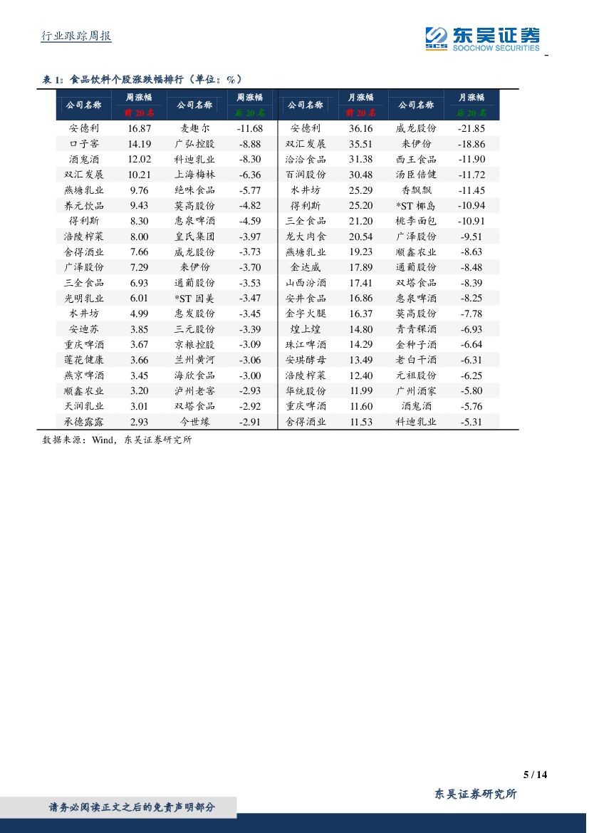 东吴证券:食品饮料行业跟踪周报:坚守核心资产主线,大众品提价抬升盈利能力.pdf