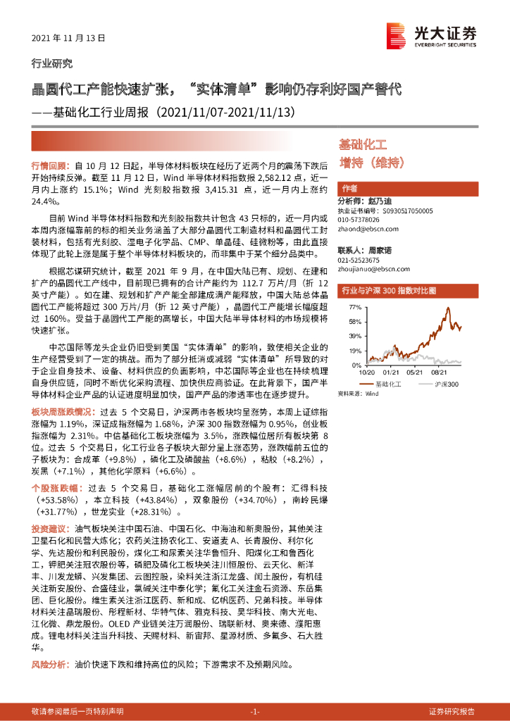 光大证券:基础化工行业周报:晶圆代工产能快速扩张,“实体清单”影响仍存利好国产替代.pdf