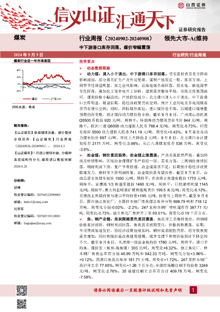山西证券:煤炭行业周报:中下游港口库存回落,煤价窄幅震荡.pdf