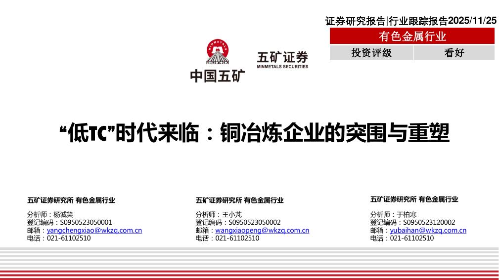 五矿证券:有色金属行业:“低TC”时代来临:铜冶炼企业的突围与重塑.pdf