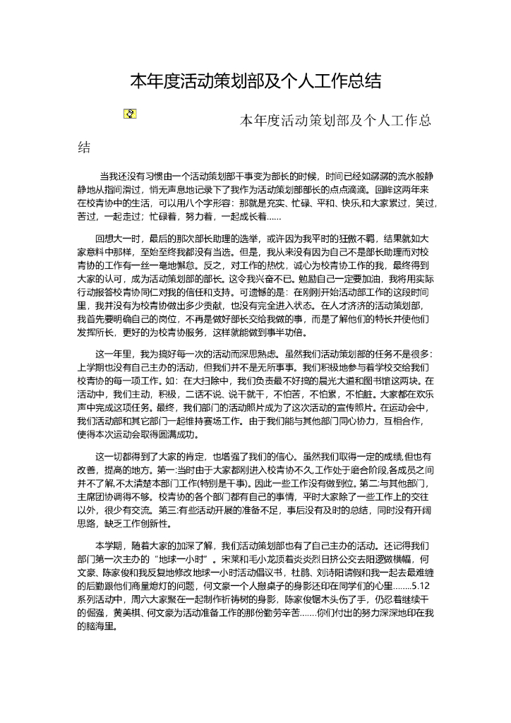 本年度活动策划部及个人工作总结.doc