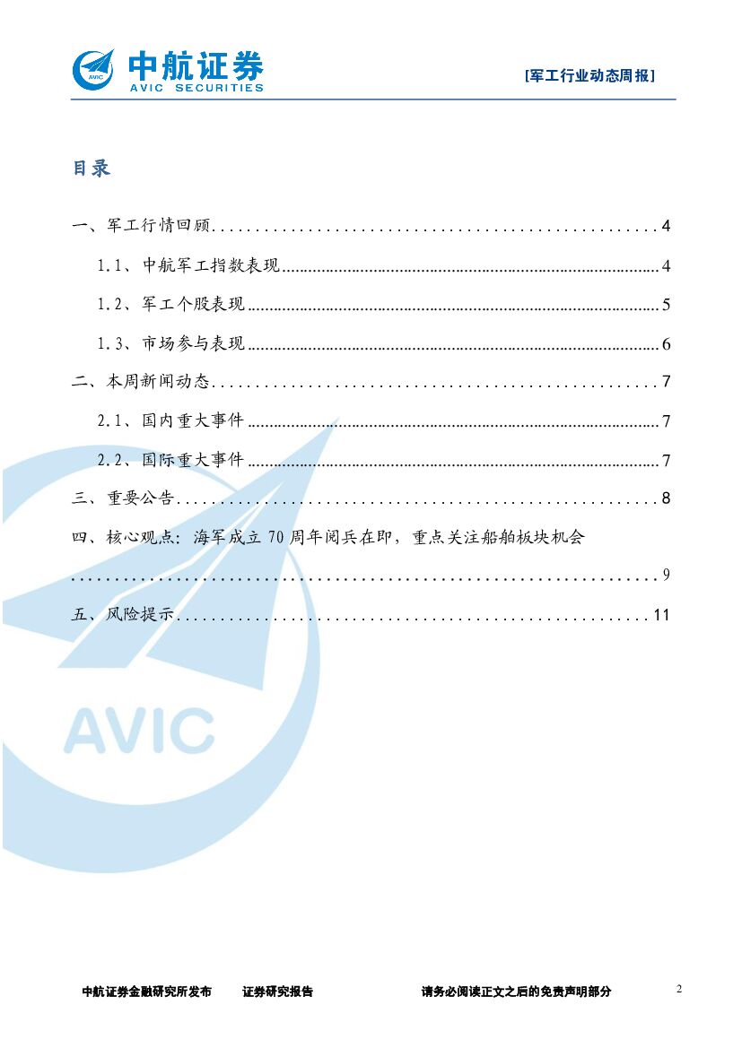 中航证券:军工行业动态周报:海军成立70周年阅兵在即,重点关注船舶板块机会.pdf