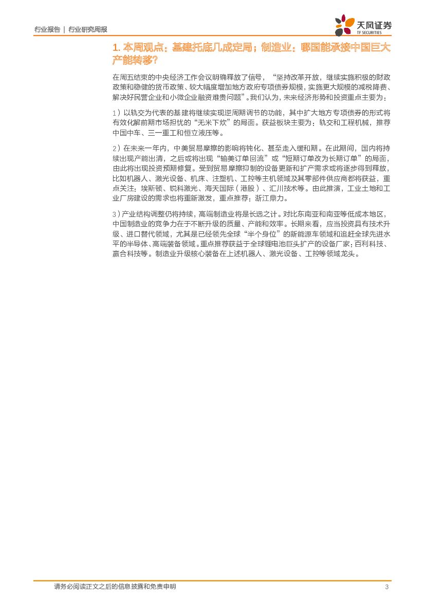 天风证券:机械设备行业研究周报:基建托底几成定局;制造业:哪国能承接中国巨大产能转移?.pdf