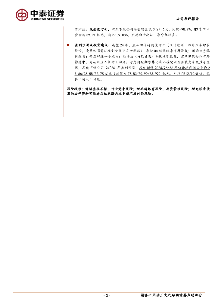 中泰证券:海澜之家(600398)-Q3销售业绩承压,期待旺季客流改善.pdf