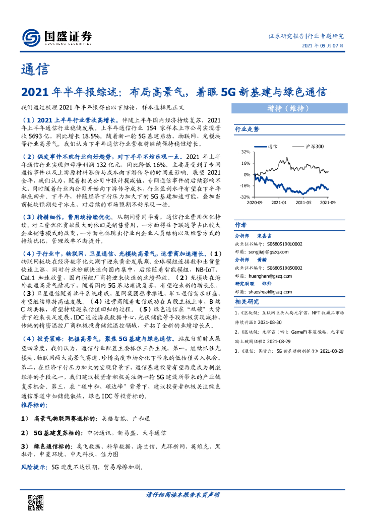 国盛证券:通信2021年半年报综述:布局高景气,着眼5G新基建与绿色通信.pdf
