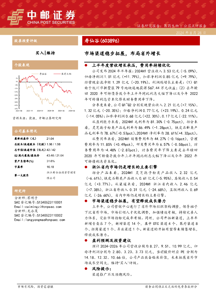 中邮证券:寿仙谷(603896)-市场渠道稳步拓展,布局省外增长.pdf