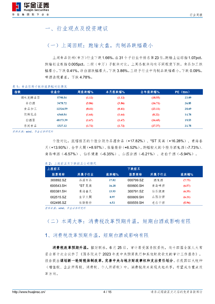 华金证券:食品饮料行业周报:消费税改革预期升温,短期白酒或影响有限.pdf