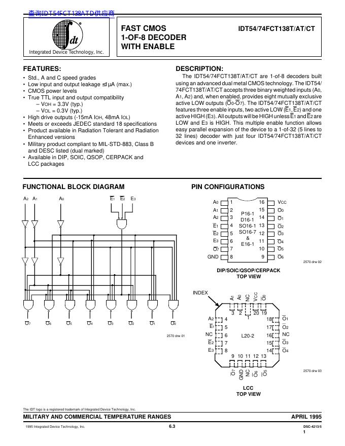 IDT IDT54/74FCT138T/AT/CT 数据手册.pdf
