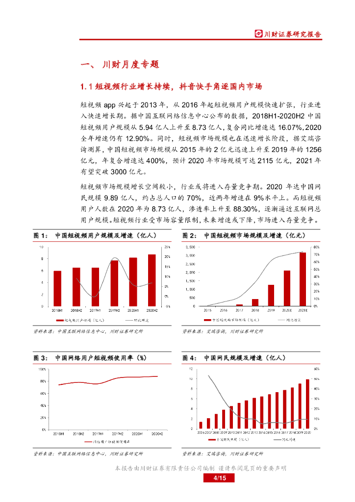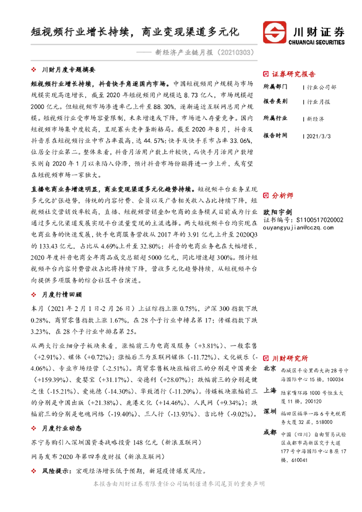 川财证券:新经济产业链月报:短视频行业增长持续,商业变现渠道多元化.pdf