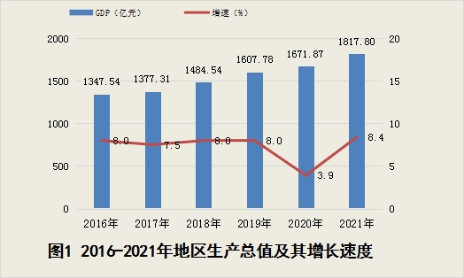 经济全面回升向好。据初步核算,全市完成地区生产总值(GDP)1817.80亿元,比上年增长8.4%(按可比价计算,下同)。其中,第一产业增加值265.62亿元,增长9.4%;第二产业增加值550.64亿元,增长9.7%;第三产业增加值1001.55亿元,增长7.4%。按常住人口计算,全市人均GDP为39767元,增长9.0%。