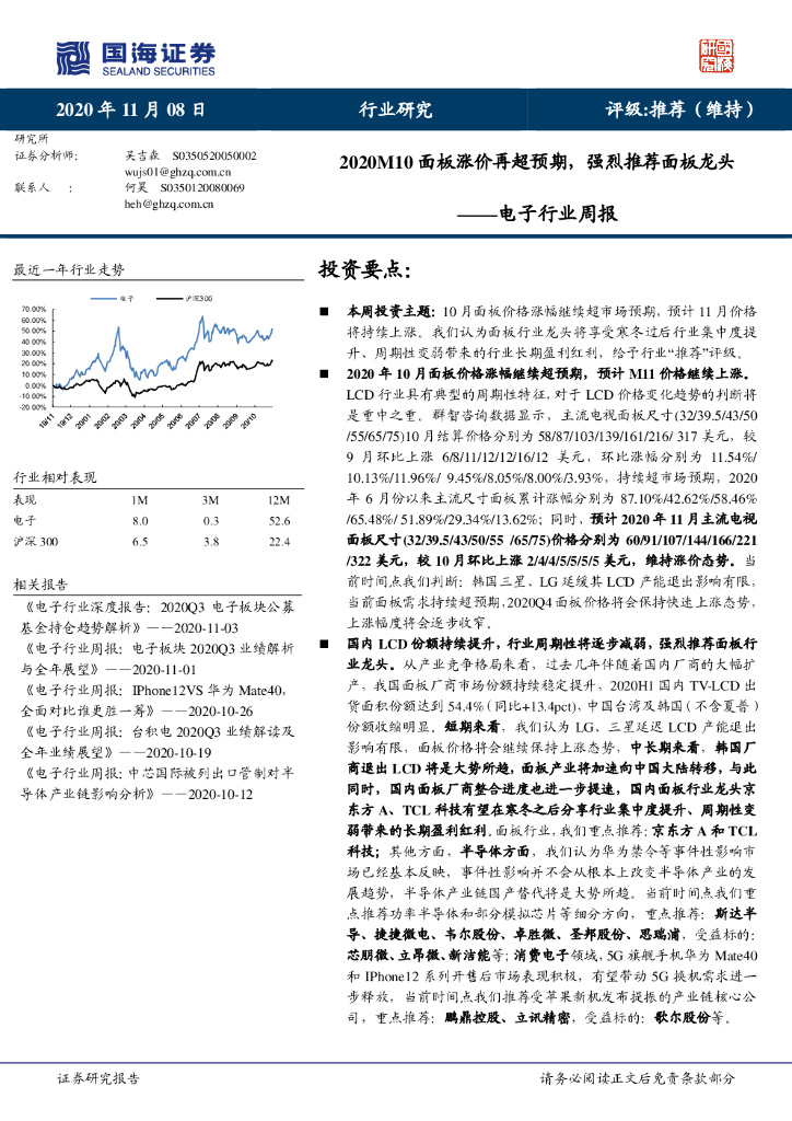 国海证券:电子行业周报:2020M10面板涨价再超预期,强烈推荐面板龙头.pdf