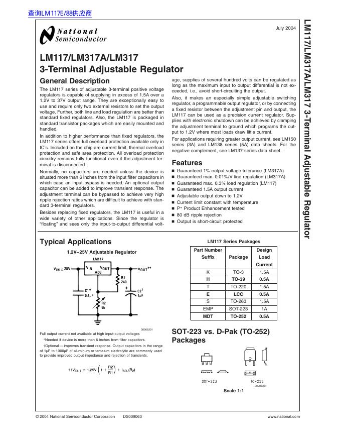 National Semiconductor LM117/LM317A/LM317 数据手册.pdf