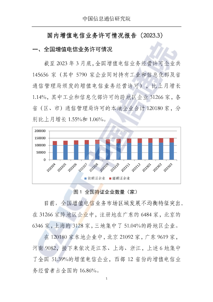 中国信通院:国内增值电信业务许可情况报告(2023.3).pdf