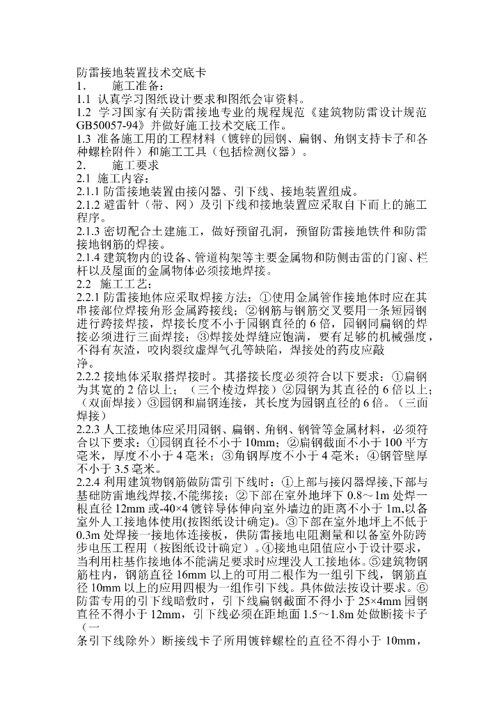 防雷接地装置技术交底卡.doc