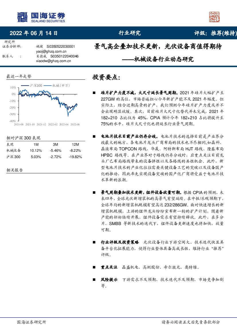 国海证券:机械设备行业动态研究:景气高企叠加技术更新,光伏设备商值得期待.pdf