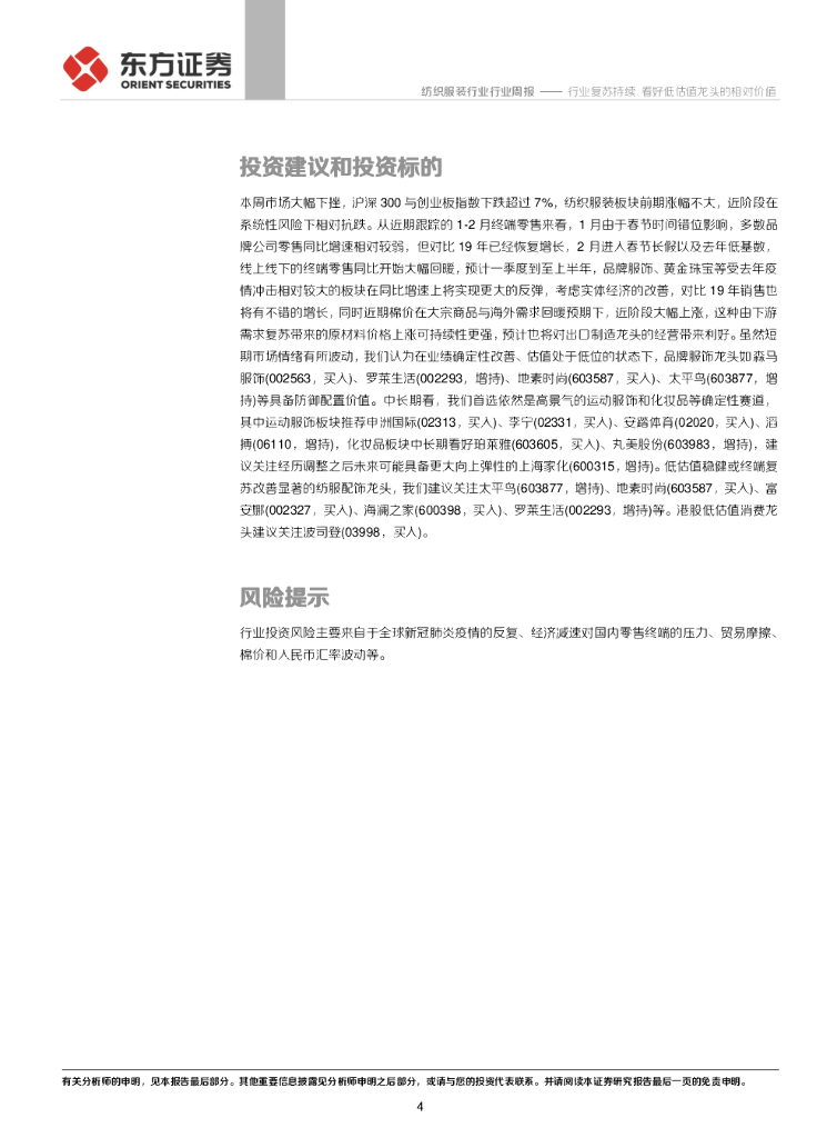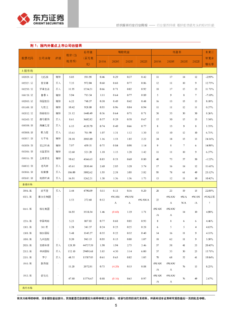 东方证券:纺织服装行业周报:行业复苏持续 看好低估值龙头的相对价值.pdf