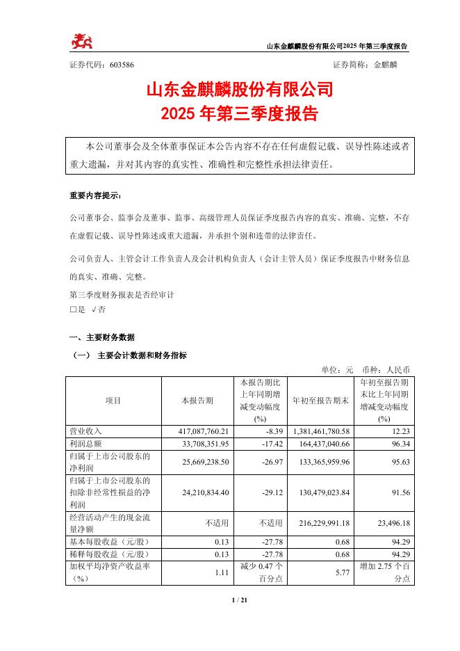 603586-金麒麟:山东金麒麟股份有限公司2025年第三季度报告.pdf