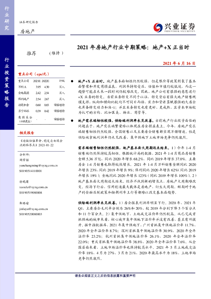兴业证券:2021年房地产行业中期策略:地产+X正当时.pdf