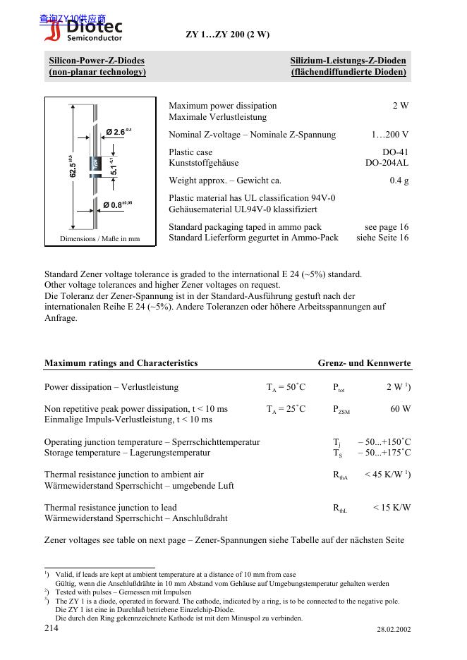 Diotec ZY 1ÖZY 200 (2 W) 数据手册.pdf