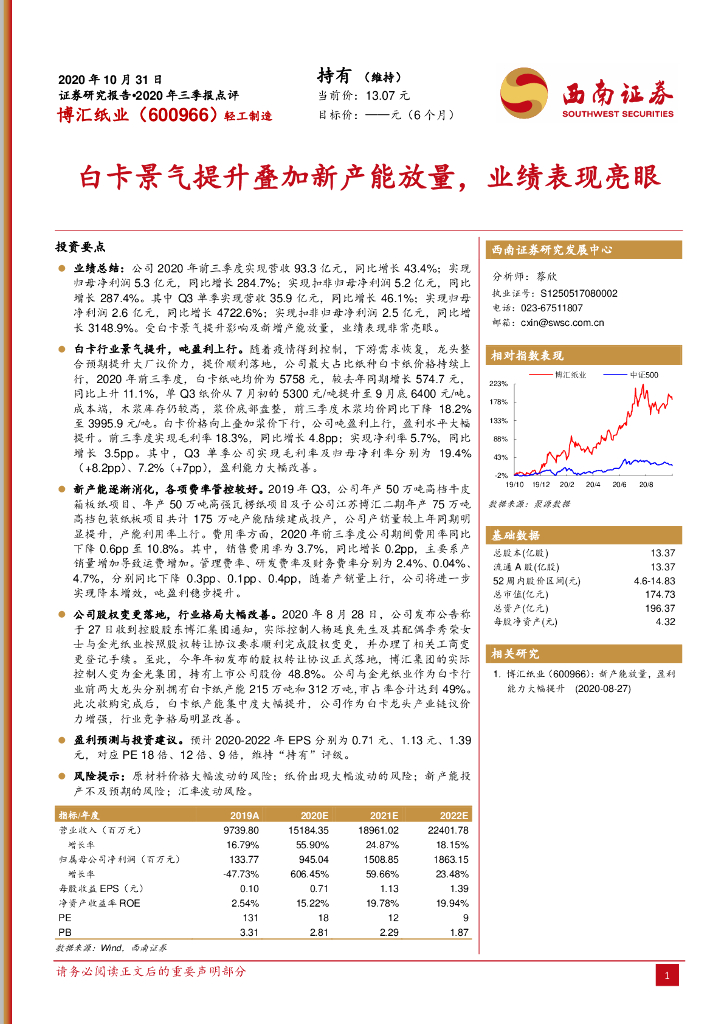 西南证券:博汇纸业(600966)-白卡景气提升叠加新产能放量,业绩表现亮眼.pdf