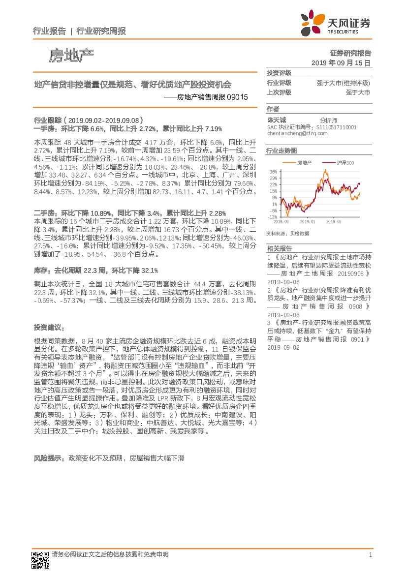 天风证券:房地产销售周报:地产信贷非控增量仅是规范、看好优质地产股投资机会.pdf