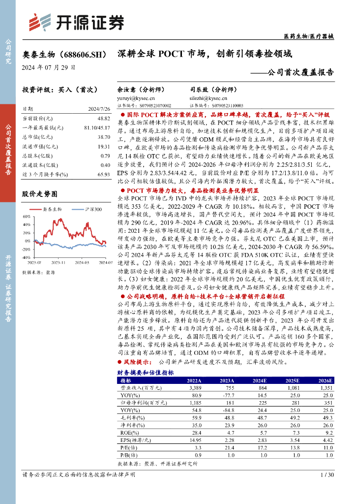 开源证券:奥泰生物(688606)-公司首次覆盖报告:深耕全球POCT市场,创新引领毒检领域.pdf