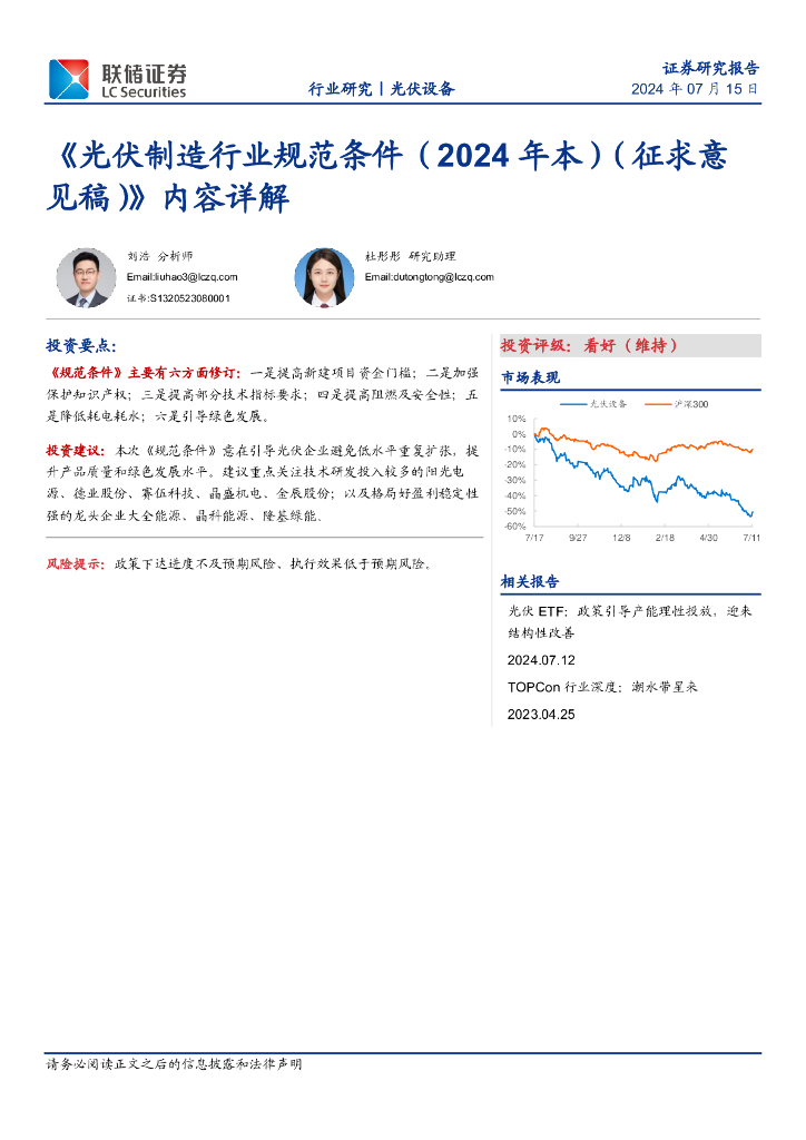 联储证券:光伏设备行业:《光伏制造行业规范条件(2024年本)(征求意见稿)》内容详解.pdf