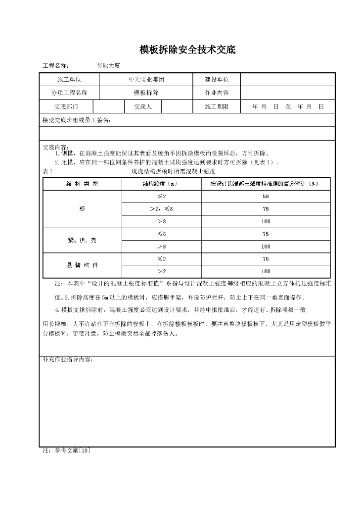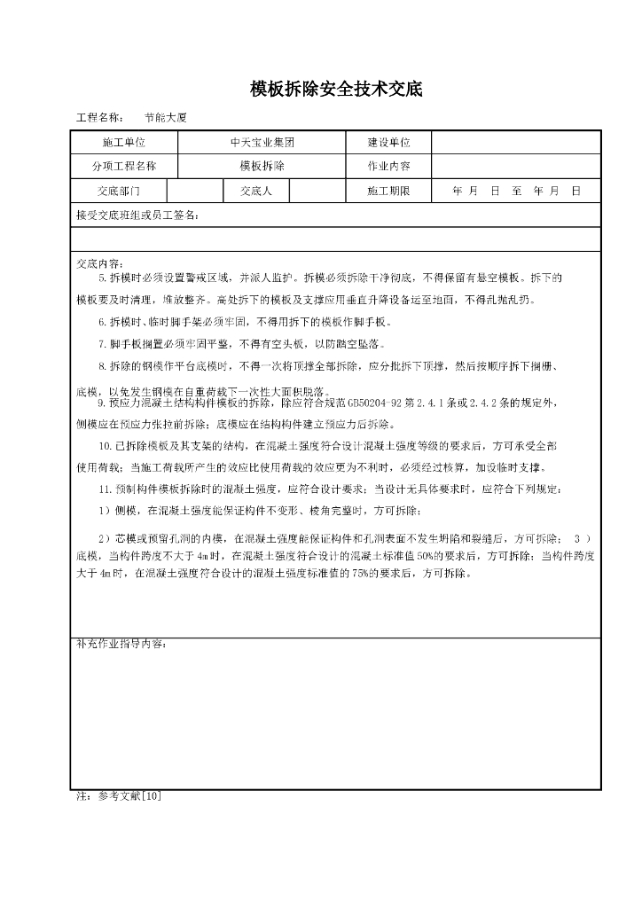 模板拆除安全技术交底.doc