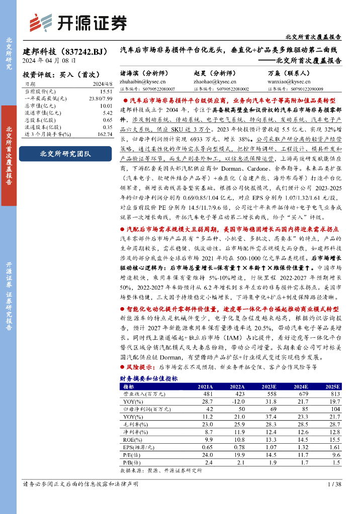 开源证券:建邦科技(837242)-北交所首次覆盖报告:汽车后市场非易损件平台化龙头,垂直化+扩品类多维驱动第二曲线.pdf