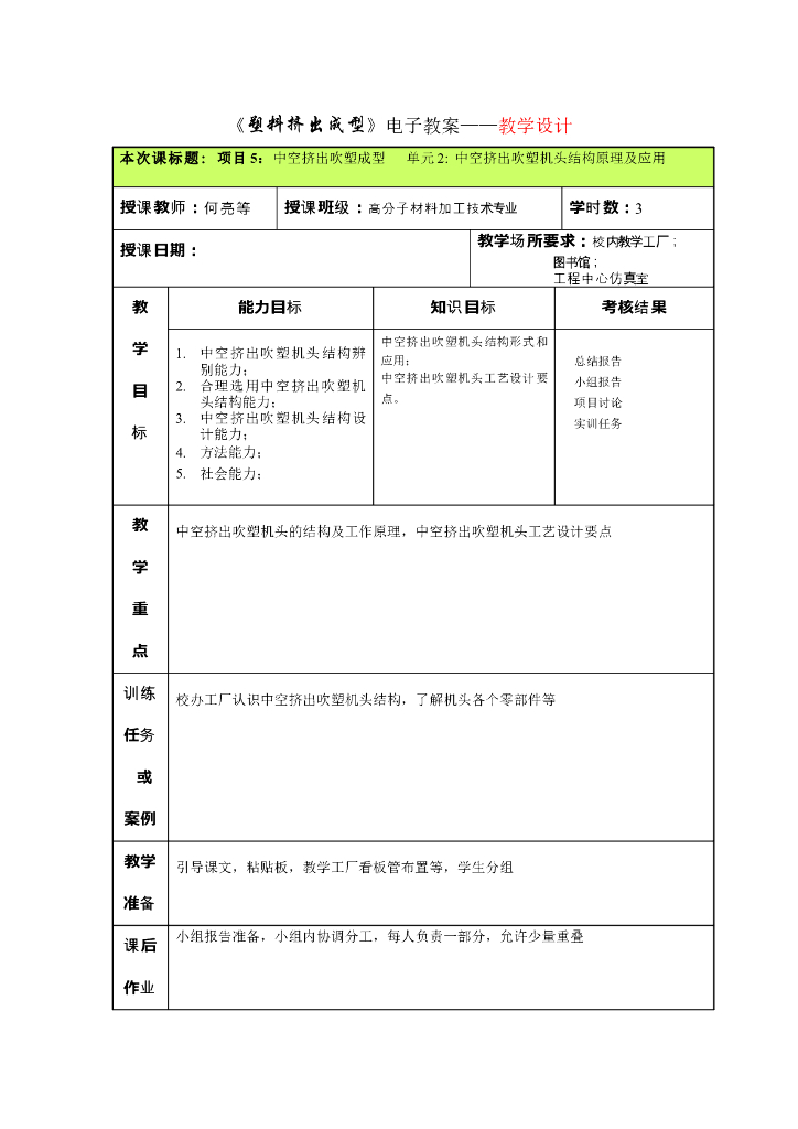 《塑料挤出成型》电子教案-单元2 中空挤出吹塑机头结构原理及应用.pdf