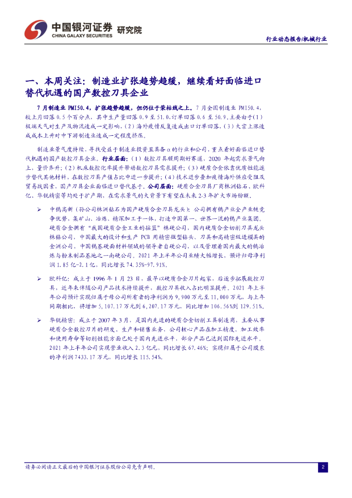 中国银河:机械设备行业周报:制造业扩张趋势趋缓,继续看好面临进口替代机遇的国产数控刀具企业.pdf