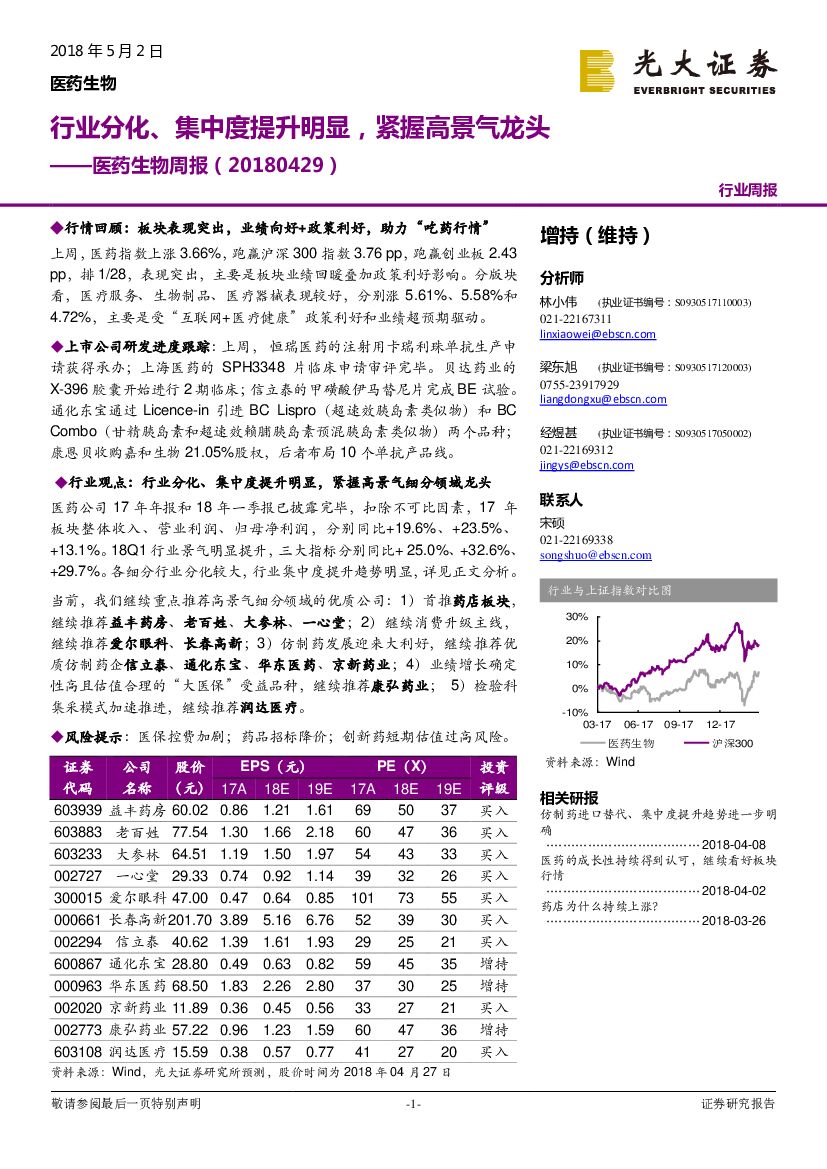 光大证券:医药生物周报:行业分化、集中度提升明显,紧握高景气龙头.pdf