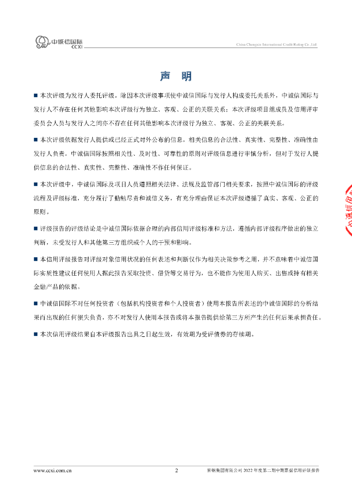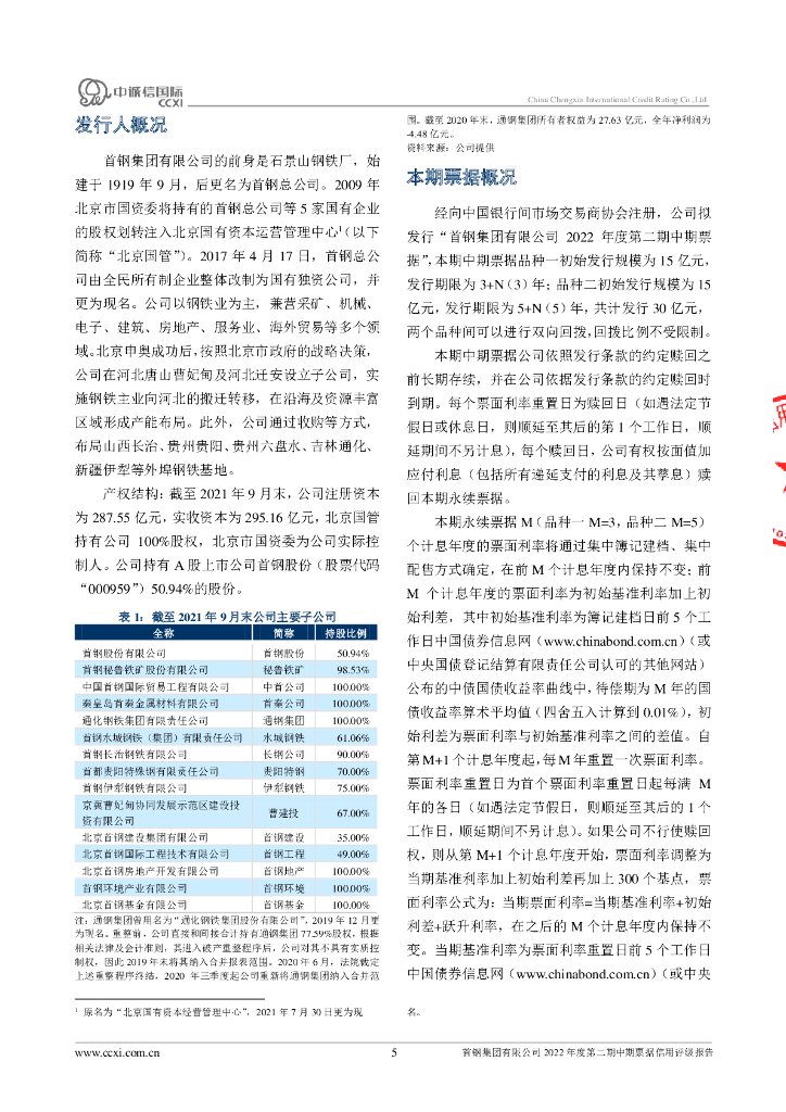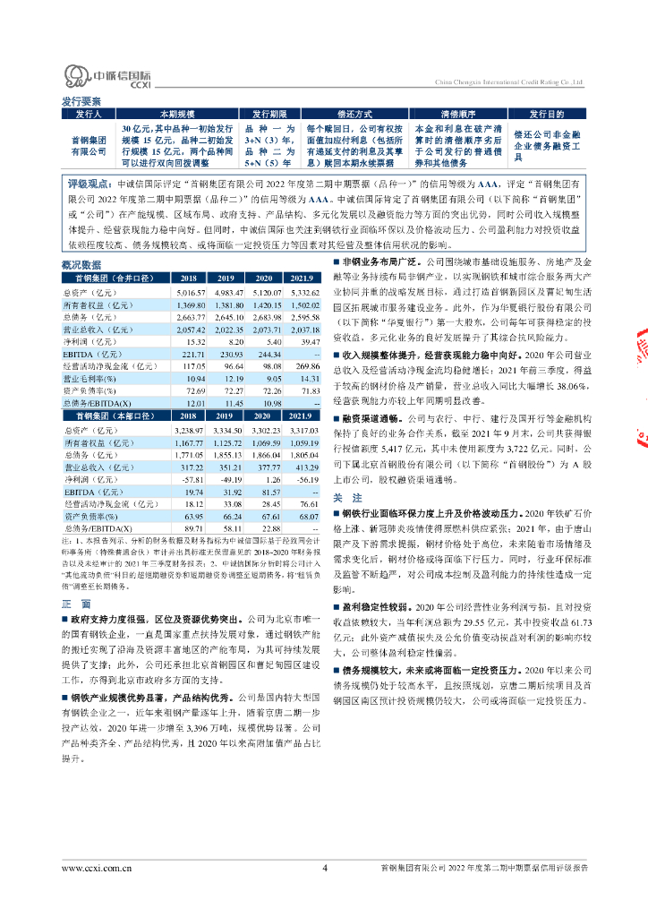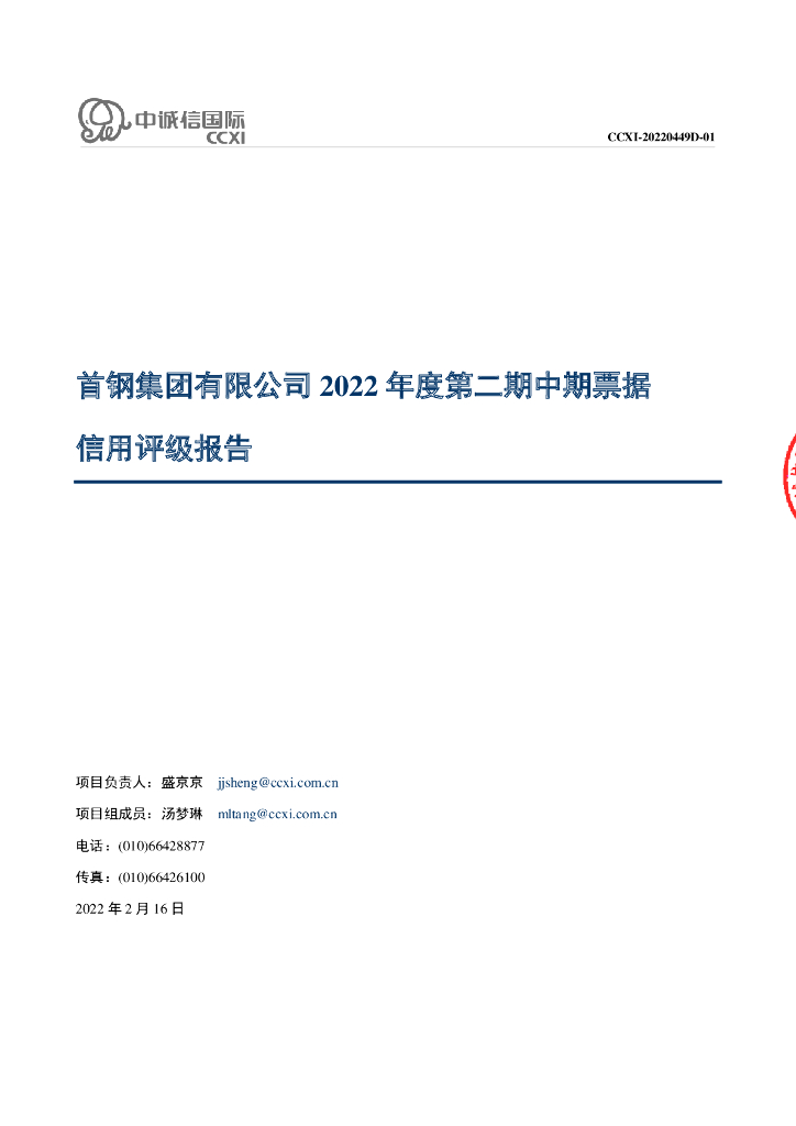 中诚信:首钢集团有限公司2022年度第二期中期票据信用评级报告.pdf