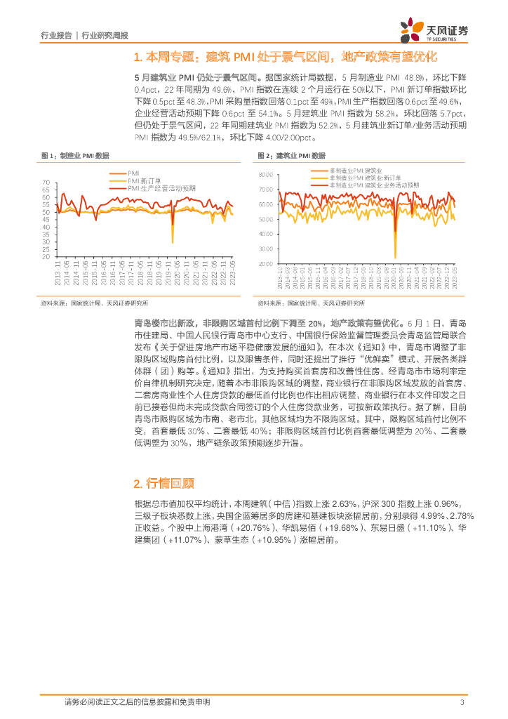 天风证券:建筑装饰行业研究周报:建筑PMI处于景气区间,地产政策有望优化.pdf