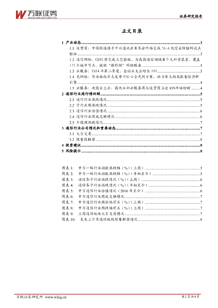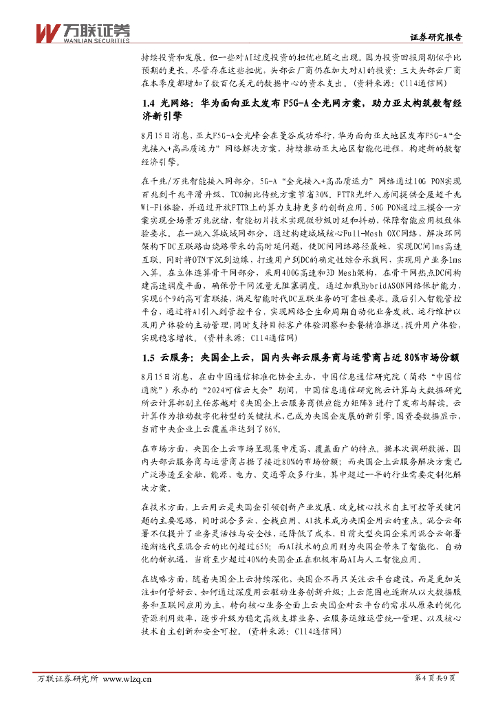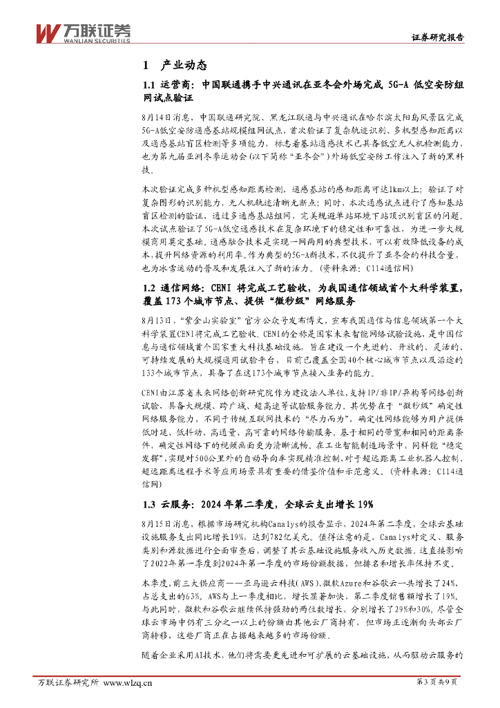 万联证券:通信行业周观点:24Q2全球云基础设施服务支出同比增长,关注央国企上云.pdf