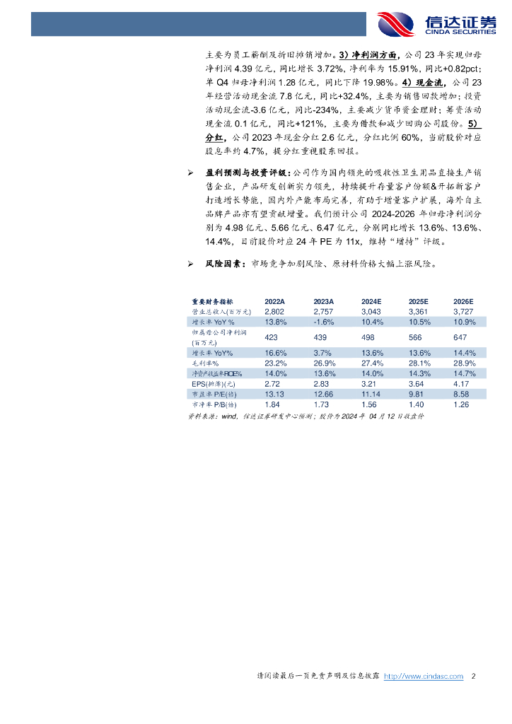 信达证券:豪悦护理(605009)-23年业绩稳健,国内外业务布局深化.pdf