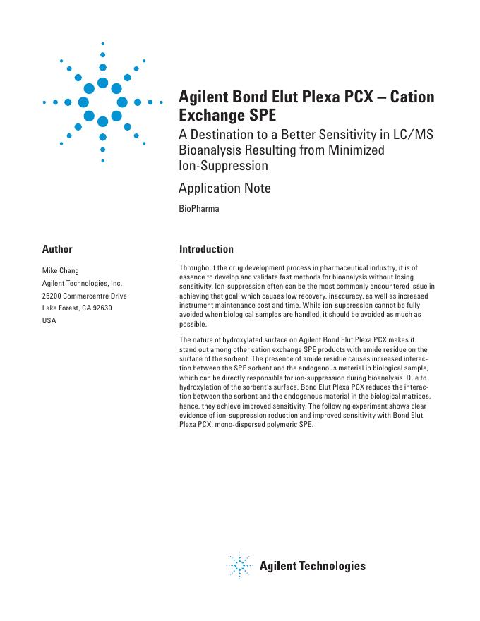Agilent Bond Elut Plexa PCX – Cation Exchange SPE 数据手册.pdf