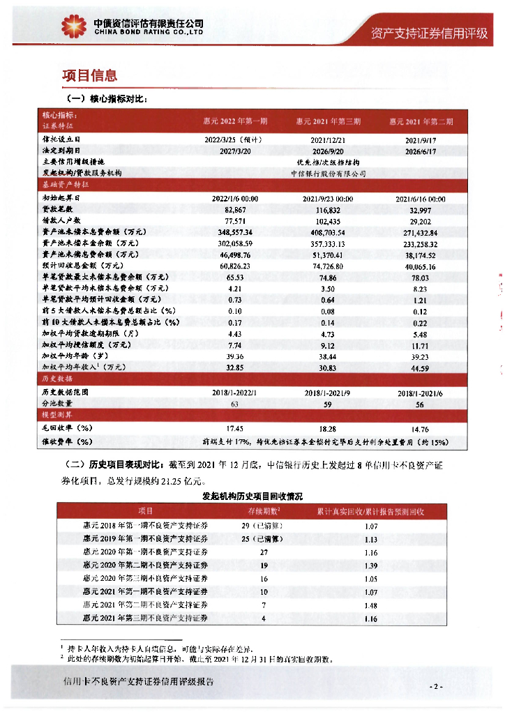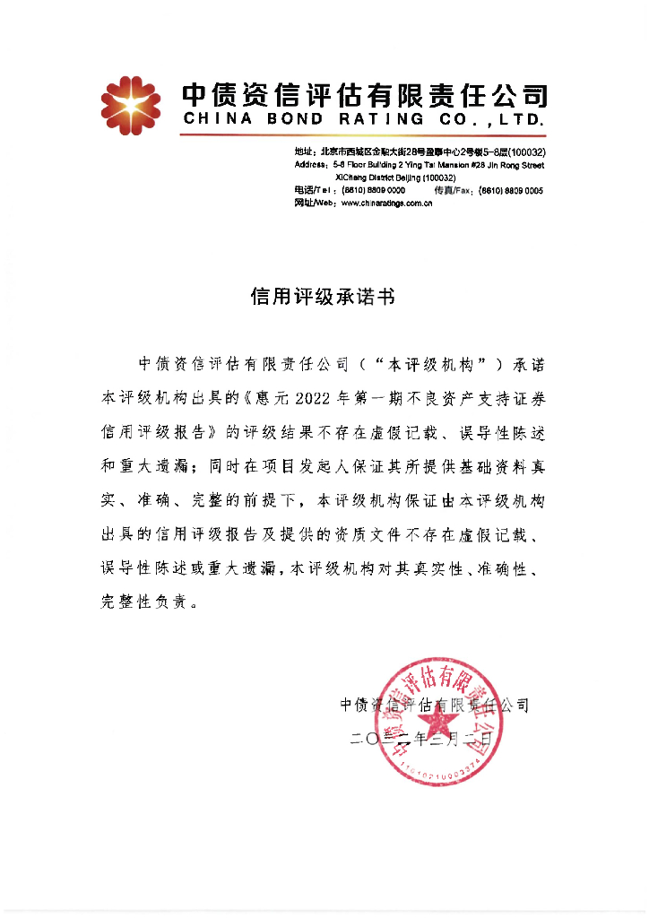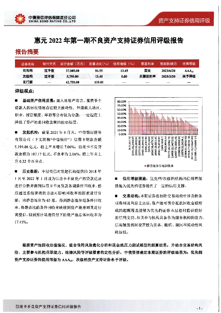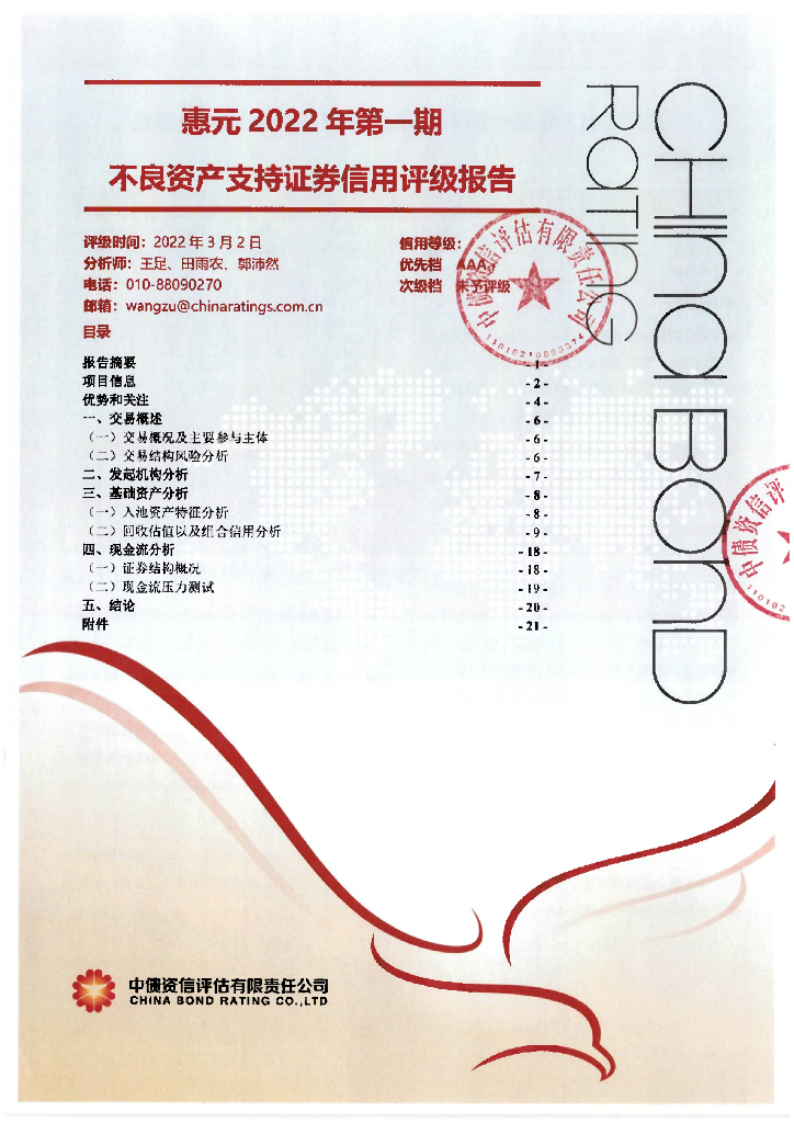 中债资信:惠元2022年第一期不良资产支持证券中债资信售前评级报告及跟踪评级安排.pdf