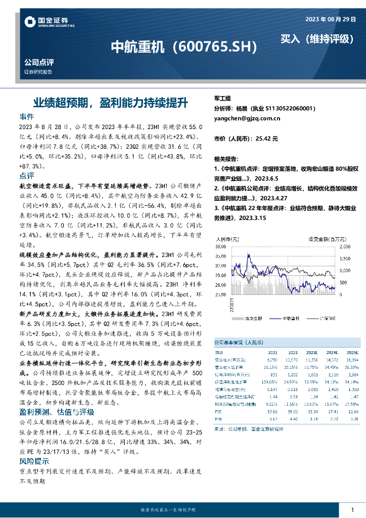 国金证券:中航重机(600765)-业绩超预期,盈利能力持续提升.pdf