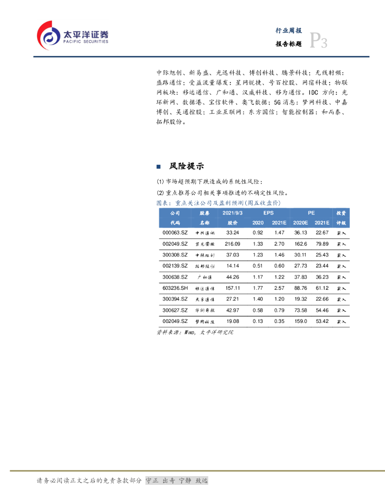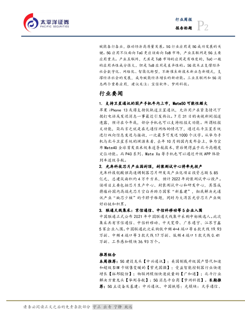 太平洋证券:通信设备Ⅲ行业周报:电信再推“量子密话”,关注5G下游应用发展.pdf
