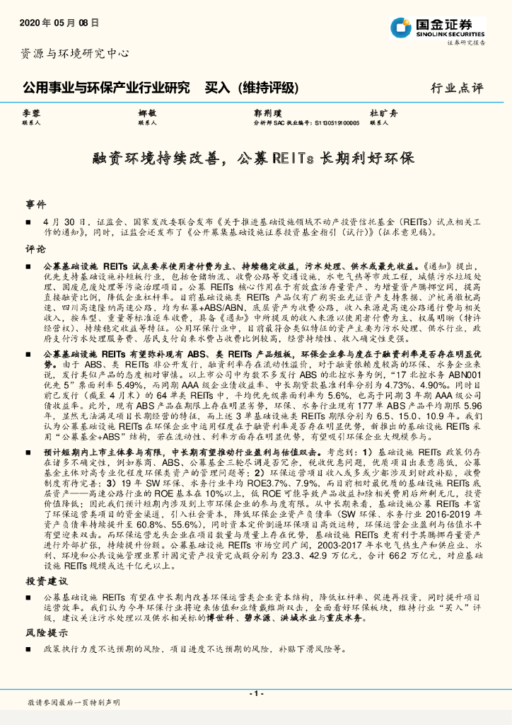 国金证券:公用事业与环保产业行业研究:融资环境持续改善,公募REITs长期利好环保.pdf