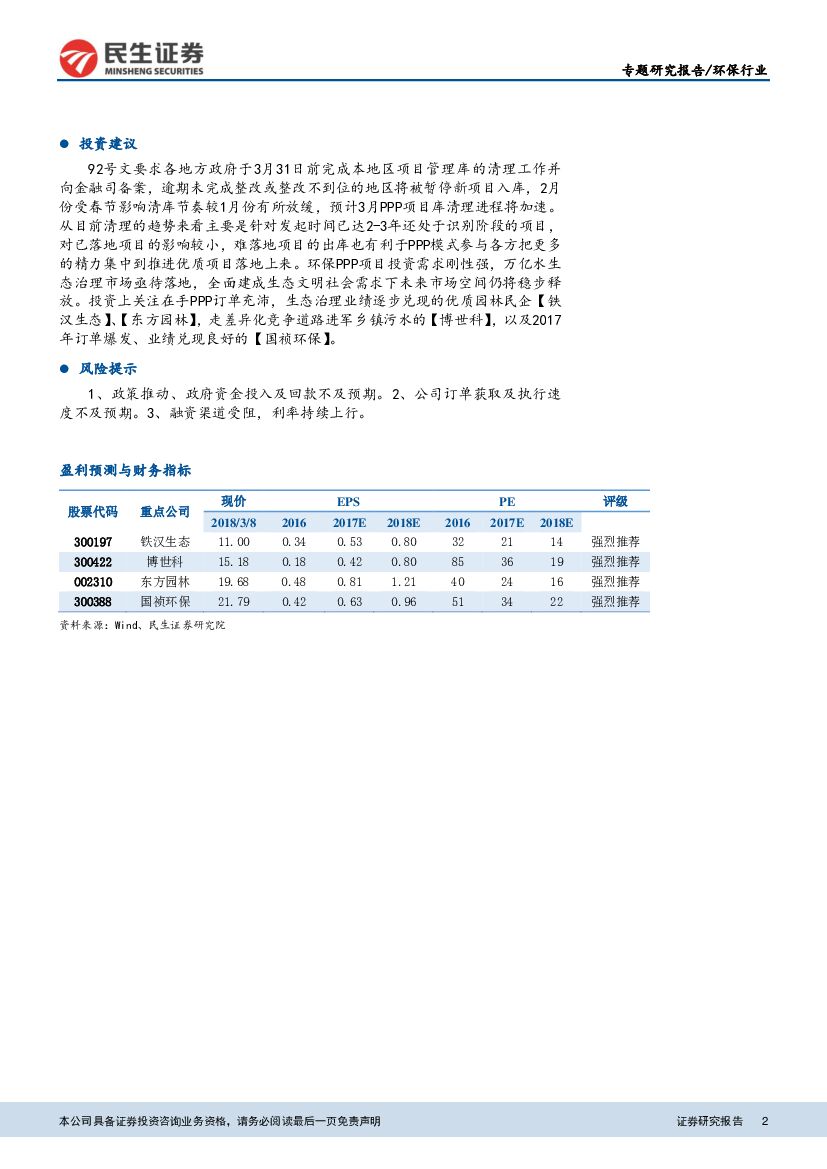 民生证券:环保PPP项目库跟踪研究系列专题之一:PPP项目库整改进行时,环保类项目刚需强、受影响小.pdf