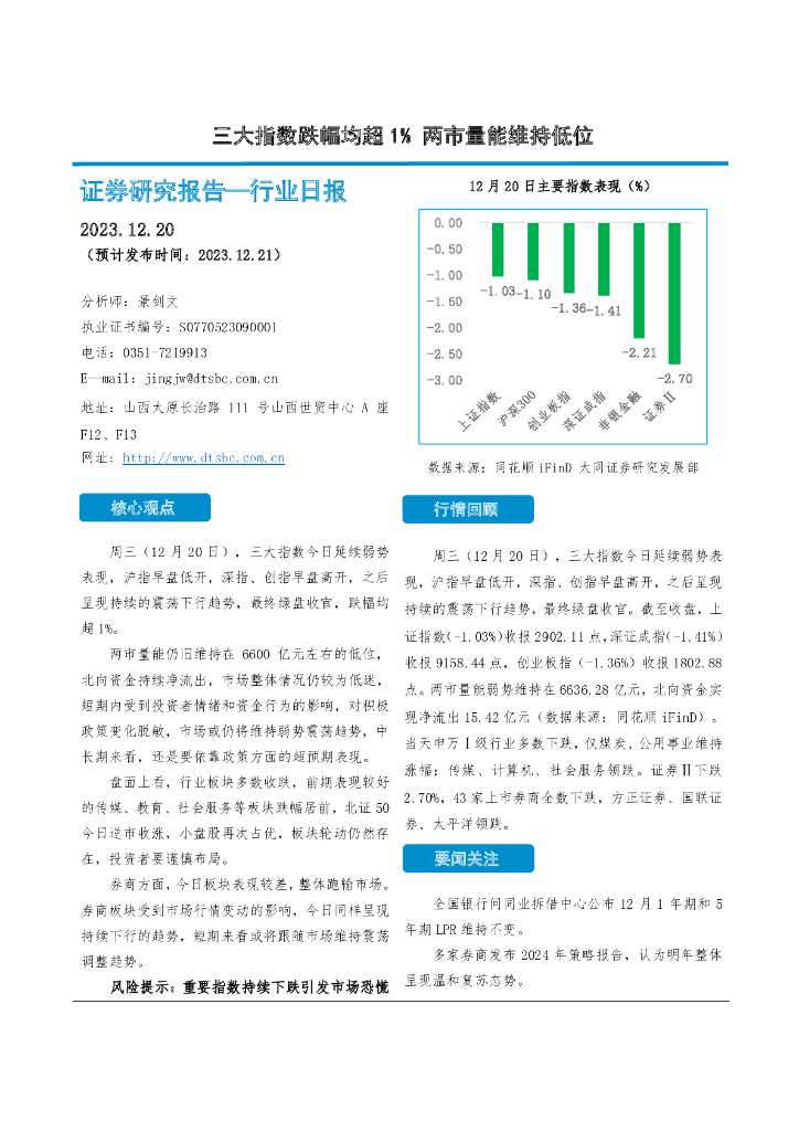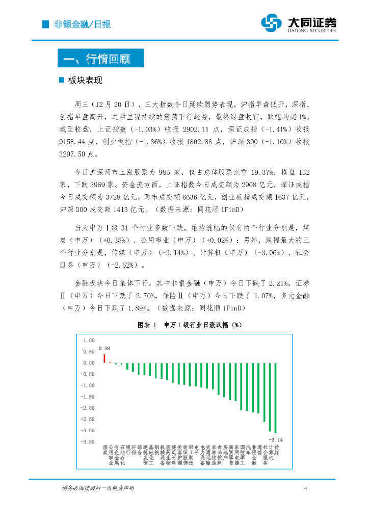 大同证券:非银金融行业日报:三大指数跌幅均超1% 两市量能维持低位.pdf