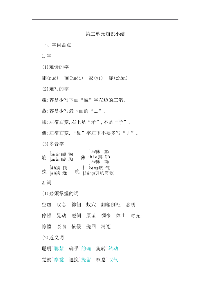 统编语文六年级下册第三单元知识小结.doc