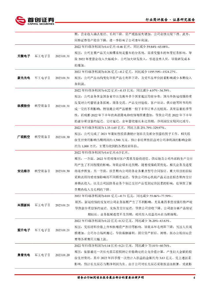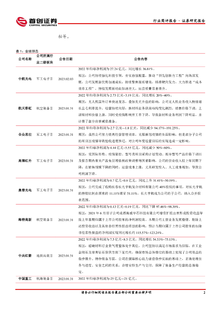 首创证券:国防军工行业简评报告:多家公司发布业绩预告,细分板块分化严重.pdf